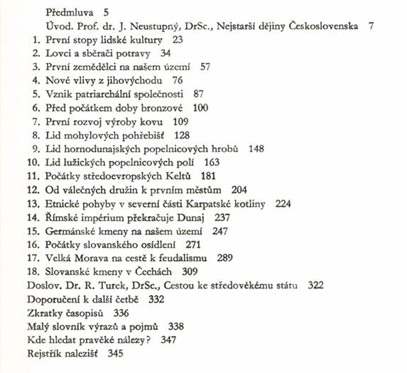 Slovníkově uspořádaný místopis archeologických nalezišť v Československu zahrnuje lokality od starší doby kamenné až po vznik raně středověkých států, obsahuje mj. popisy nalezišť a nálezů.