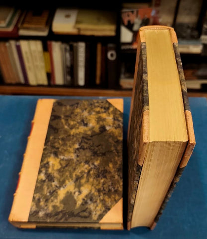 Polokožené vazby, zlacené vrchní ořízky. Hřbety vlivem světla mírně vybledlé, jinak čisté, stářím či používáním nijak nepoznamenané exempláře. 6 svazků 25x24 cm.