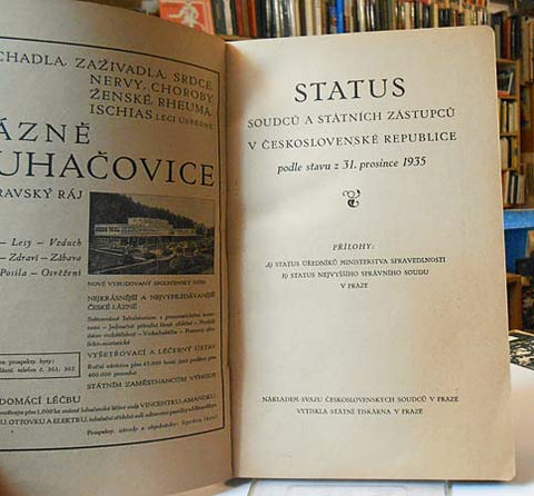 Praha, Svaz československých soudců, 1936. 239 s., přílohy: A) Status úředníků ministerstva spravedlnosti ; B) Status nejvyššího správního soudu v Praze. Rejstříky jmenné a místní.