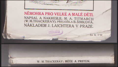 Němohra pro velké a malé děti. Napsal a nakreslil Michael Angelo Titmarch (W.M. Thackeray), přeložila Bož. Šimková. Pěkné knihy pro mládež, roč. VI., č. 1. Praha, Jan Laichter, 1914. 181 s. Pův. brož. 180x125 V dolní části na přední obálce a hřbetu stopy používání, jinak nepoškozeno.