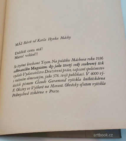 Praha; DP; 1936. 4. soukromý tisk odběratelům Magazínu dp. Vytiskl F. Obzina ve Vyškově. 69 s.; 4 celostr. ilustrace TOYEN (jednostranný tisk, 3 x sign. v desce). Pův. brož. 255x185 -