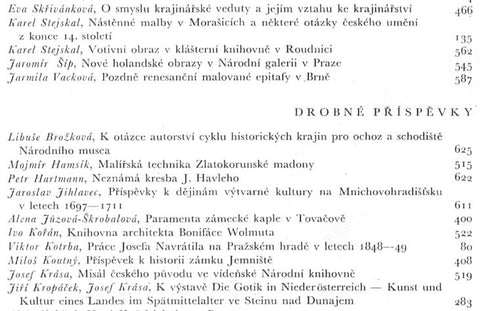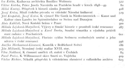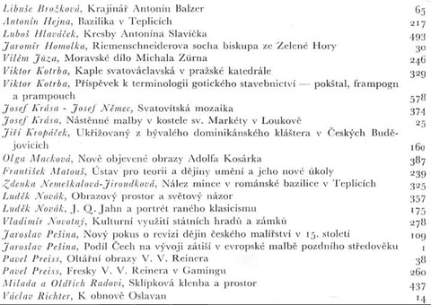 Mj. obsahuje: L. Hlaváček: Kresby Antonína Slavíčka; M. a O. Radovi: Sklípková klenba a prostor; V. Richter: K obnově Oslavan; Ant. Hejna: Bazilika v Teplicíc ...