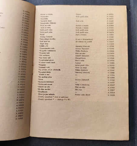 Soupis 120 nahrávek u firmy Ulraphon. - Praha; Gramofonové závody; (1948). Nestr. (18) s. včetně obálky; texty Voskovec; Werich a V. Holzknecht; diskografie; fotogr. vyobrazení. Pův. brož. 210x150 - Mírné stopy běžného opotřebení, dobře zachováno.