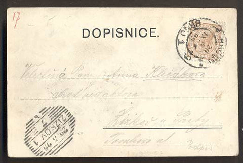 Dopisnice - Brno: Kostel sv. Jakuba. 1899. Prošlá poštou; dlouhá adresa; známka; razítko; popsaná s podpisem V. J. Klofáče - (1868 - 1942); byl český a československý novinář a politik; vůdčí osobnost českých národních socialistů. 135x90. /antikvariát 1121/