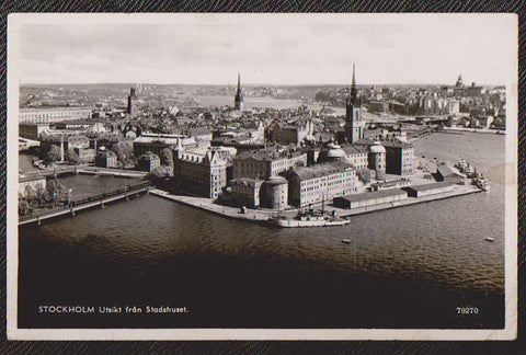 Podpisy 15 hráčů a členů týmu ze zájezdu do Stockholmu. Bína, Bešťák, Bedrníček, Trávníček ad. Pohlednice, ze Stockholmu odeslána 1.6.1939.