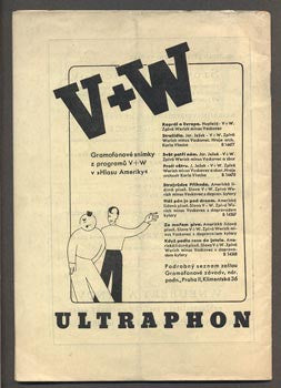 Praha; Divadlo V+W; (1946-7). Nestr. (36) s. včetně obálky; text V+W; ohlasy v tisku; 17 fotografií z inscenace; 2 kresby ADOLFA HOFMEISTRA; dobové reklamy. Pův. brož. 210x145 První společné poválečné vystoupení (premiera v září 1946). /0622 antikvariát/