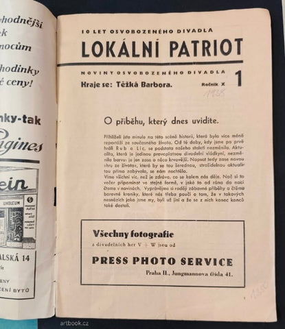 Nákladem vlastním. 31 s., mj. obsahuje dvoulist s programem a obsazením divadelní hry Těžká Barbora.
