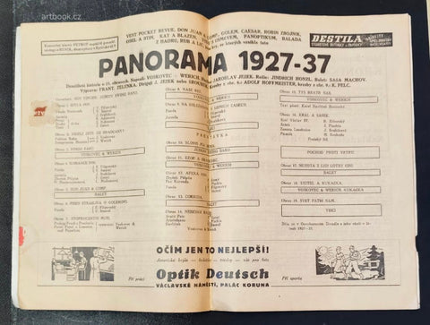 Nákladem vlastním, odpovědná redaktorka Staša Jílovská. 39 s., mj. obsahuje dvoulist s programem a obsazením "divadelní mozaiky" Panorama 1927-37, (výstupy a písně z desetileté Osvobozeného divadla).